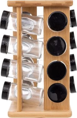 Kruidenrekje Met 16 Kruidenpotjes 29 Cm Van Bamboe – Keukenkruiden Potjes – Kruiden Bewaren
