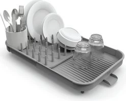 Met dit uitschuifbare afdruiprek van Joseph Joseph is afwassen een fluitje van een cent. Het rek is voorzien van een schuin aflopende bodem inclusief opening om het overtollige water af te voeren en beschikt over een verplaatsbare bestekbak voor al jouw lepels, messen en vorken. Je kunt het rek uitschuiven waardoor deze bruikbaar is voor zowel een eenpersoonshuishouden als voor een gezin. Een musthave voor iedere keuken.