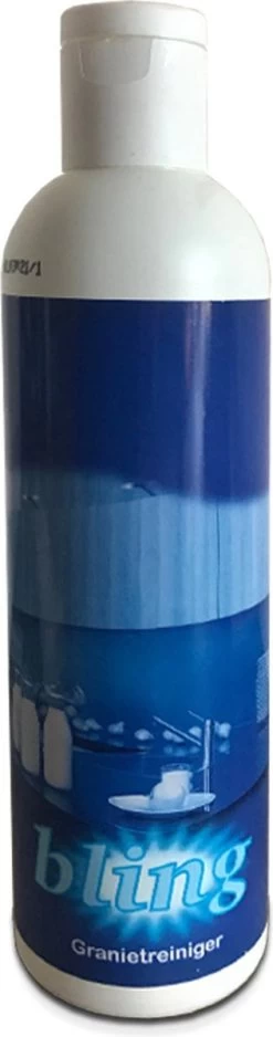 Voor het onderhoud van uw keukenwerkblad van graniet of natuursteen. De Bling Granietreiniger is biologisch afbreekbaar en is een zacht schoonmaak- en ontvettingsmiddel op waterbasis, geeft praktisch geen geur af en kan gebruikt worden op nagenoeg alle natuurstenen werkbladen. Alvorens te gebruiken, altijd het etiket te lezen en te volgen.