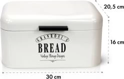 Handig en chic! De compacte Delaware broodtrommel van Klarstein in jaren 40 optiek, is niet alleen heel stabiel, maar ook een absolute blikvanger in de keuken. Dankzij de perforaties aan de achterkant van de broodtrommel is de belangrijke luchtcirculatie gewaarborgd. Vocht- en schimmelvorming worden zo voorkomen in de behuizing van hoogwaardig geëmailleerd plaatstaal met klapdeksel! De opbergbox kan snel en eenvoudig met een vochtige doek worden schoongemaakt.
