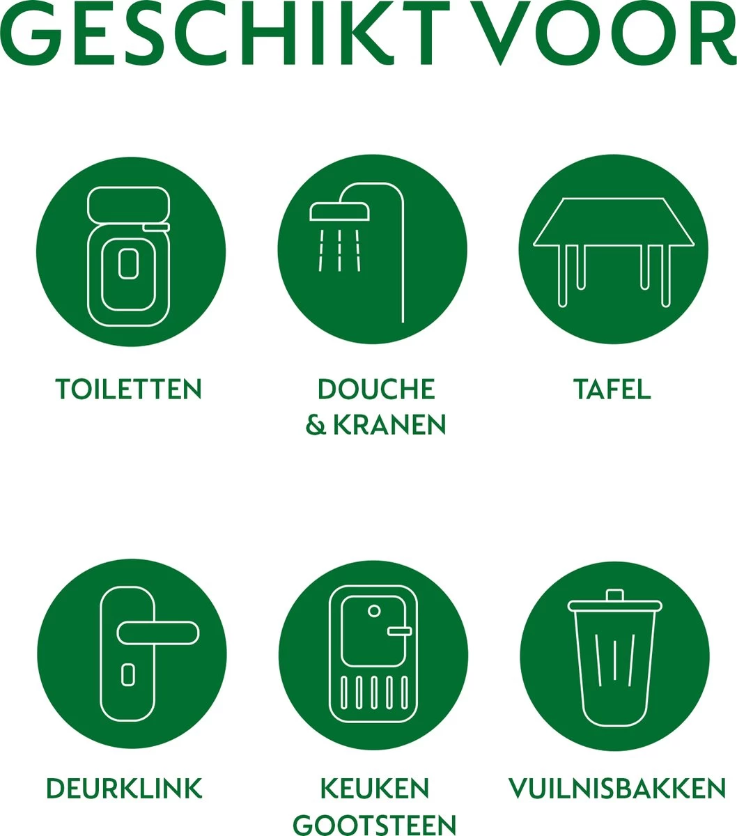 MULTI-OPPERVLAKKEN: geschikt voor toiletten, vuilnisbakken, gootsteen, deurklinken, bad & kranen, douches.