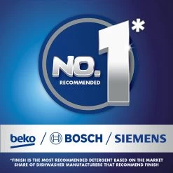 - Meest aanbevolen reinigingsmiddel, op basis van gerenommeerde vaatwasmachine- en glasfabrikant die Finish aanbevelen.