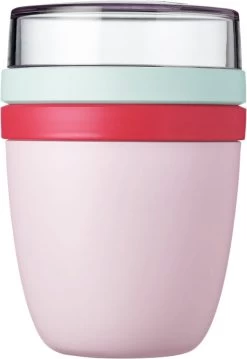 Deze muesli beker to go van Mepal is één handig product om je lunch of tussendoortje mee te nemen, maar heeft twee verschillende compartimenten om de verschillende ingrediënten gescheiden te houden. Bijvoorbeeld de yoghurt en de muesli of fruit zitten in een aparte container, waarbij de deksel van de yoghurtbeker niet de bodem van de mueslicontainer is. Door middel van een eenvoudige draaibeweging scheid je de twee compartimenten om de ingrediënten te mixen. Dé oplossing om geknoei tijdens het mengen te voorkomen. Het is de eerste oplossing die super makkelijk is in het gebruik.