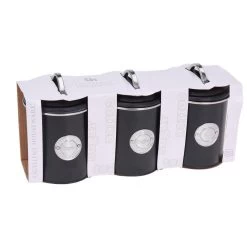 Bewaar je voorraad nu zichtbaar in stijl. Deze drie stoere retro voorraadpotten beschikken over zilveren labels met de teksten: coffee, tea en sugar. Super leuk om neer te zetten in een open keukenkastje of op een wandplank.