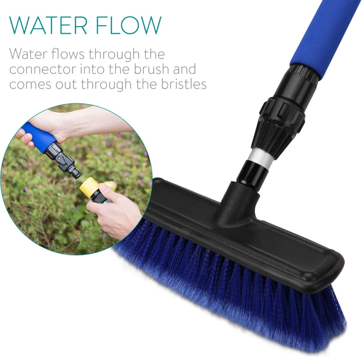- WATERSTROOM: Je kunt de borstel aansluiten op een standaard tuinslang. Water stroomt door het verbindstuk in de borstel & komt er door de borstelharen uit. De extra zachte borstelharen laten geen krassen achter terwijl je vuil van je auto verwijdert.