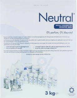 De geur van frisse, schone was is een van de beste momenten die er is. En ook wanneer je een gevoelige huid hebt, wil je dit moment blijven creëren. Neutral Waspoeder Wit Parfumvrij helpt hierbij. Het wasmiddel is speciaal ontwikkeld voor de gevoelige huid en vermindert het risico op huidreacties. Neutral wasmiddel is geschikt voor de witte en gekleurde was. De parfumvrije formulering maakt je kleding effectief schoon en is bovendien mild voor je huid en voor je kleding. Het wasmiddel bevat 0% parfum en 0% kleurstof. Uiteraard is het wasmiddel ook dermatologisch getest en goedgekeurd. Neutral Waspoeder Wit Parfumvrij verwijdert vlekken effectief en houdt de kleur van je was langer stralend. Wanneer je een allergie of een gevoelige huid hebt, mag dit geen belemmering zijn om van het leven te genieten. Neutral heeft zich daarom gespecialiseerd in producten die het risico op huidirritatie verminderen. Alle producten van Neutral bevatten daarom ook geen onnodige toevoegingen, waaronder parfum en kleurstoffen. Deze stoffen verhogen het risico op huidirritatie namelijk. Bovendien zijn de ingrediënten die Neutral gebruikt milieuvriendelijk, waardoor ze worden aanbevolen door diverse organisaties uit onder andere Noorwegen en Denemarken. Neutral is mild en hierdoor geschikt voor alle huidtypen en leeftijden! Voor meer informatie, bezoek www.Neutral.nl