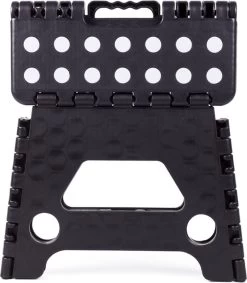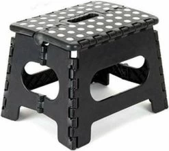 Opvouwbare Kruk Klein Zwart/Wit Deze opvouwbare kruk is zeer geschikt om te gebruiken als opstap voor bijvoorbeeld in de keuken. De kruk is zwart met witte stippen en volledig opvouwbaar waardoor je deze makkelijk kunt opbergen. De uitgevouwen afmetingen van de kruk zijn: 23x19x19 cm. Kenmerken: