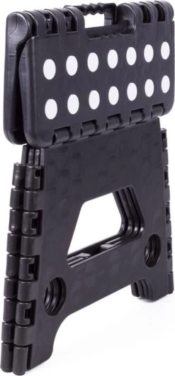 Opvouwbare Kruk Klein Zwart/Wit Deze opvouwbare kruk is zeer geschikt om te gebruiken als opstap voor bijvoorbeeld in de keuken. De kruk is zwart met witte stippen en volledig opvouwbaar waardoor je deze makkelijk kunt opbergen. De uitgevouwen afmetingen van de kruk zijn: 23x19x19 cm. Kenmerken: