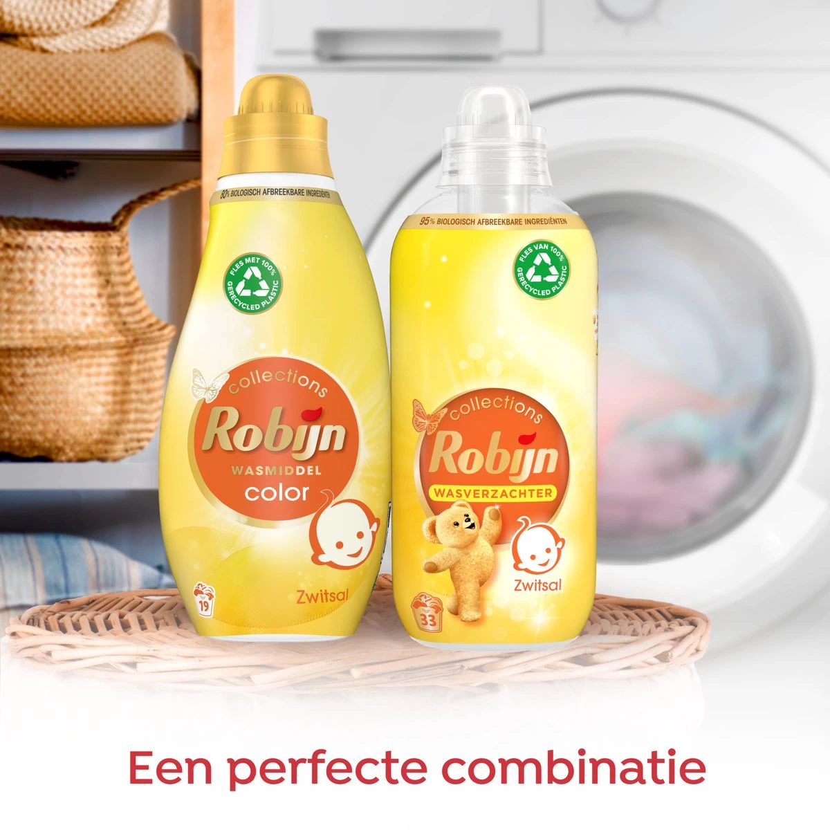 Laten we proberen meer te genieten in een wereld die maar doorraast en soms aan je voorbij vliegt. Juist van kleine dingen, zoals de geuren en kleuren die je in het dagelijks leven tegenkomt. Met Robijn kun je natuurlijk genieten in geuren en kleuren. Robijn steekt veel zorg en aandacht in het ontwikkelen van producten. Wasmiddelen die kleuren lang mooi houden en wasverzachters met heerlijke geuren. Daarmee brengt Robijn deze genietmomentjes ook binnenshuis tot leven: tijdens het aantrekken van je pas gewassen jeans of als je tussen de lakens kruipt, gewassen met heerlijk ruikend wasmiddel en wasverzachter. Het motto van Robijn is al jaren “Wat mooi is, moet mooi blijven”. Met wasmiddelen en wasverzachters van Robijn zorg je dat je kleding langer als nieuw blijft, en bovendien heerlijk ruikt. Robijn Klein & Krachtig Collections Zwitsal Vloeibaar Wasmiddel is een perfecte geurmatch met Robijn Zwitsal Wasverzachter.