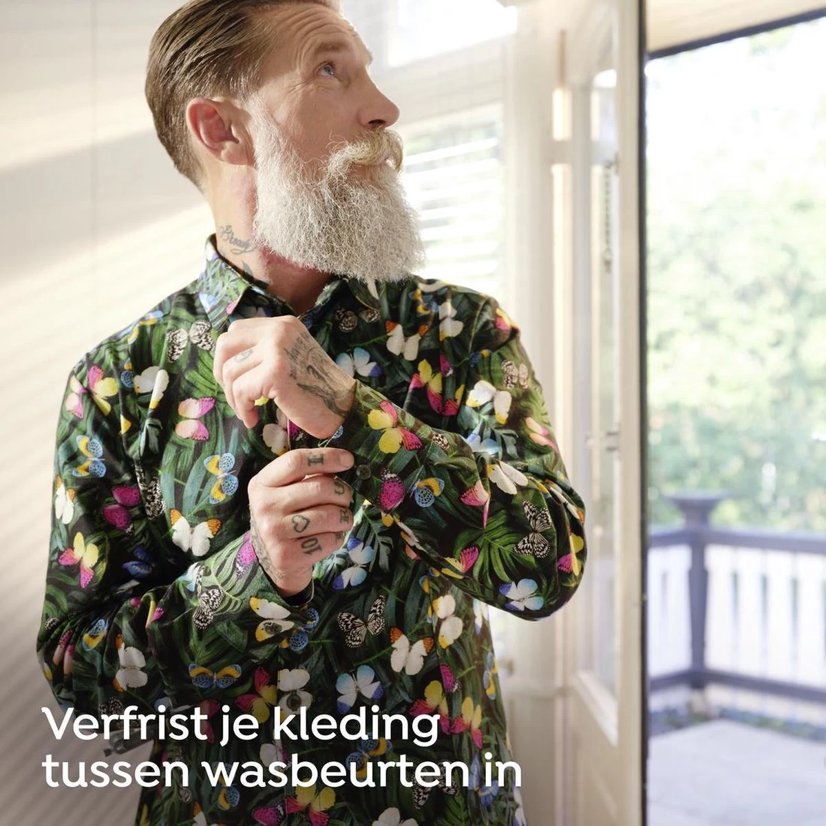 - De verfrissende spray verzacht de stoffen en herstelt de vorm van je kleren