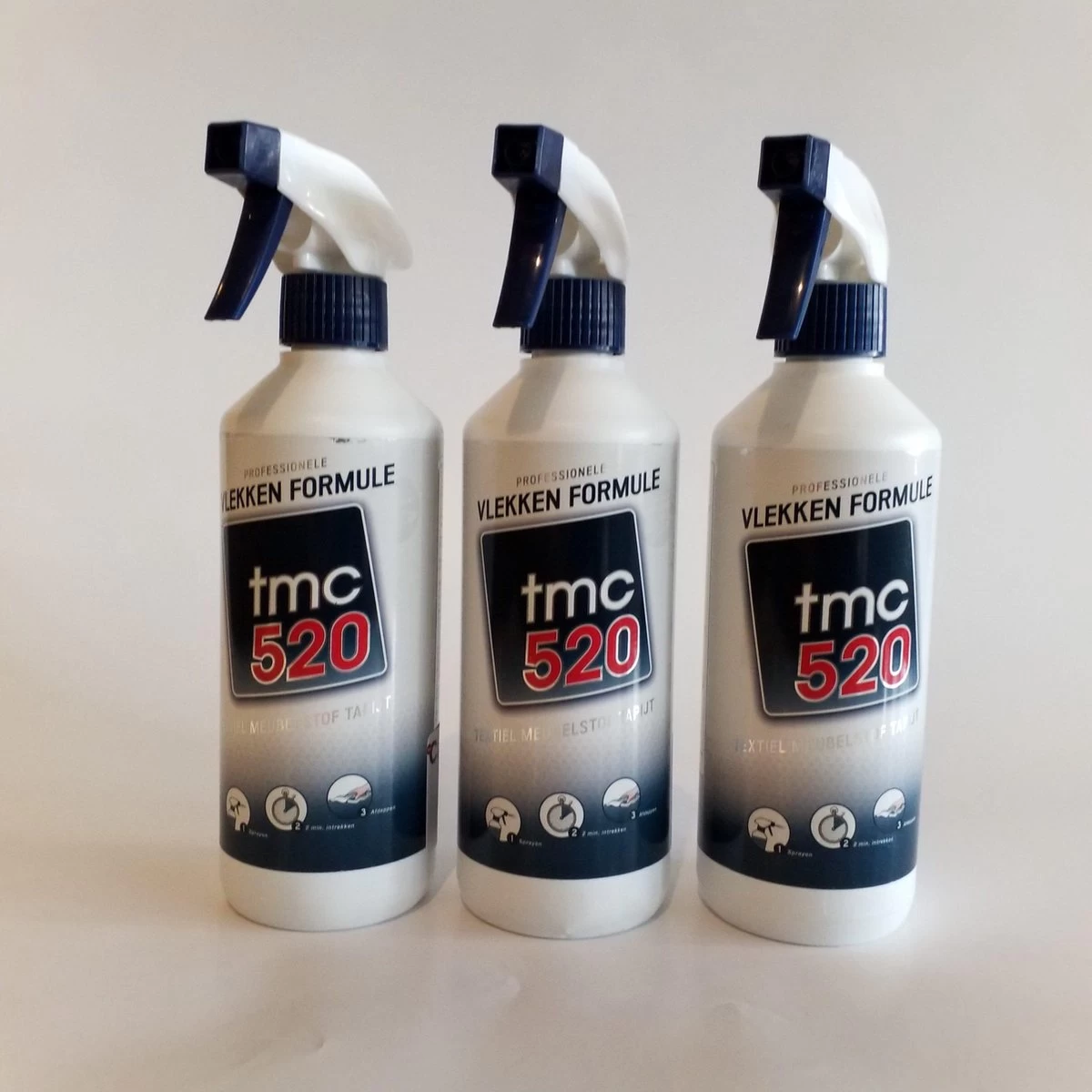 TMC 520 vlekken formule verwijdert eenvoudig en effectief vlekken uit alle textiele stoffen materialen.Er zijn vele vlekkentabellen, waarin men aangeeft met welk ‘mengseltje’ de betreffende vlek kan worden verwijderd. Erg omslachtig en vaak met een gering resultaat.TMC 520 vlekkenformule vervangt deze vlekkentabellen met als voordeel een kant en klaar product in een handige spuitflacon direct te gebruiken op praktisch elke vlek in elk type textiel… simpel en eenvoudig. TMC 520 is geheel zonder risico: zelfs de servicediensten van de grote tapijtmerk fabrikanten gebruiken het dagelijks voor het oplossen van diverse vlekkenproblemen. Ook wordt het gebruikt in verschillende hotels, en die hebben toch te maken met allerlij soorten vlekken
