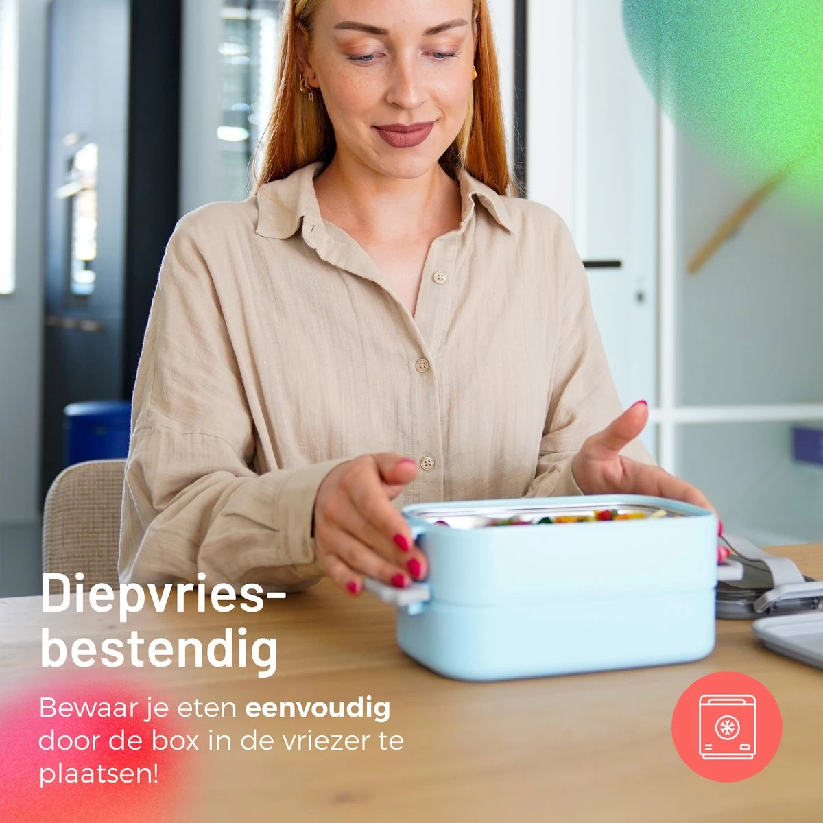 Door het handige ontwerp zal de lunchbox niet gaan lekken. De lunchbox is tevens magnetron-, vaatwasser-, en vriezerbestendig (-20 tot 120 graden).