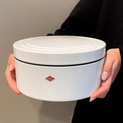 Bewaar je favoriete koekjes in deze stijlvolle koektrommel van Wesco. Deze koekjestrommel is helemaal luchtdicht, hierdoor blijven jouw koekjes langer vers. Zo kun je dus langer genieten van deze knapperige lekkernijen. Erg handig, maar deze koekjestrommel ziet er ook nog eens goed uit. Hij heeft een simpel maar strak design en door de kringen op de deksel krijgt de koekjestrommel een klassieke uitstraling. Hierdoor past deze koekjestrommel perfect bij de andere producten uit de classic lijn van Wesco. Deze trommel is gemaakt van kwalitatief plaatstaal met een zwarte poedercoating. De inhoud is 4 liter. De koekjestrommel is 13 centimeter hoog en heeft een diameter van 24 centimeter.