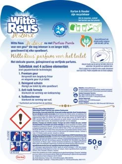 Het Witte Reus De Luxe Magic Moonflower toiletblok zorgt voor een prettige en langdurige geurbeleving van hoogwaardige parfums in elke badkamer. Daarnaast zorgt het toiletblok voor een uitstekende reiniging van het toilet en voorkomt het de vorming van kalkaanslag en vuil.