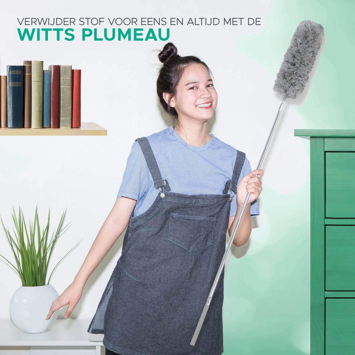 Met de kantelbare en uitschuifbare plumeau van WITTS stoft u elk hoekje van het huis gemakkelijk en snel af. Moeilijk bereikbare plekken zijn geen uitdaging voor de plumeau met kantelbare telescoopsteel. De makkelijk schoon te maken plumeau verwijdert stof binnen een handomdraai, zodat u zonder moeite kan genieten van een schoon huis.